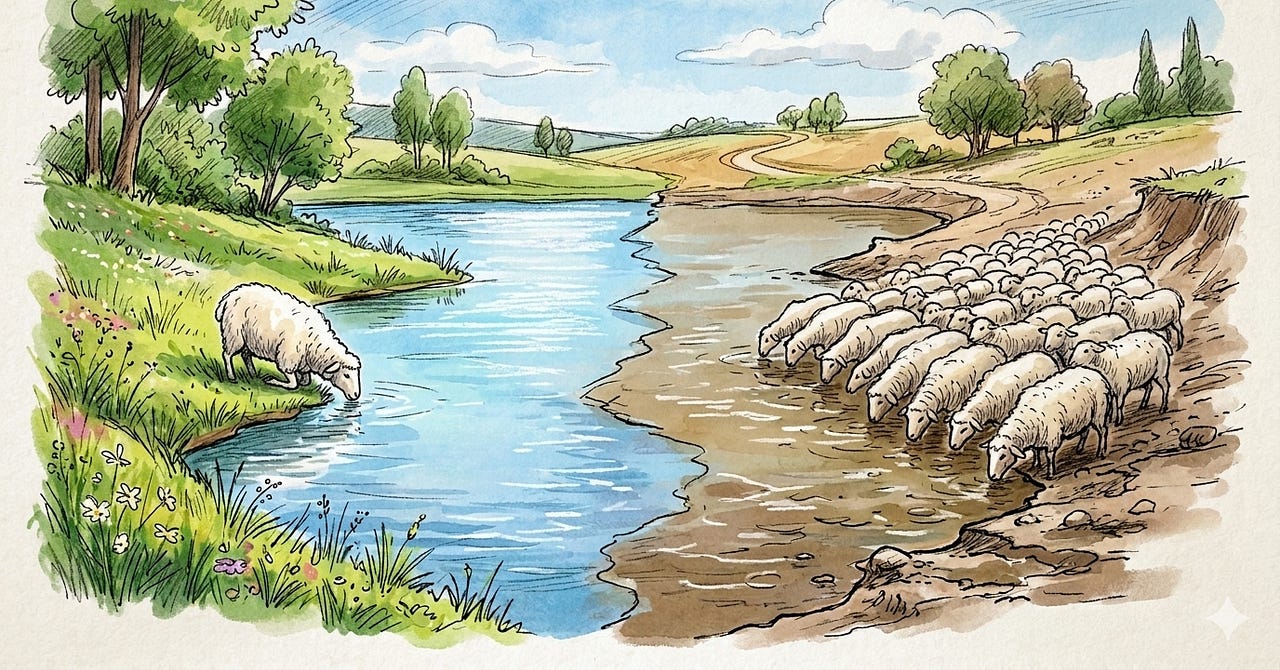 Existe uma velha lógica da natureza que quase sempre se repete nos negócios: quem chega antes bebe água limpa.