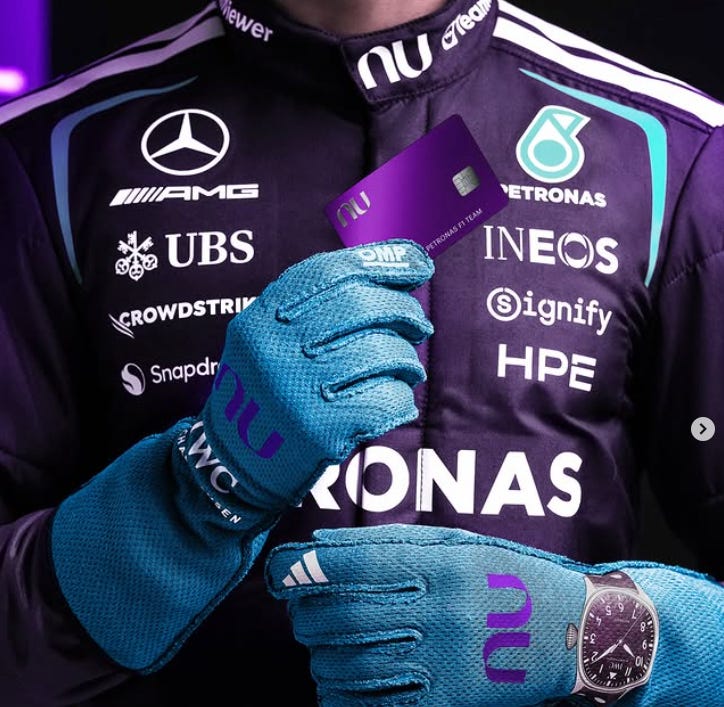 A entrada de Nubank na Formula 1, em parceria de longo prazo com a Mercedes-Benz, não é só patrocínio. É estratégia. O anúncio feito pelo perfil do Nubank nos EUA deixa claro: a ambição agora é global, segundo o direcional estratégico da companhia, que vai começar a operar nos EUA em breve.