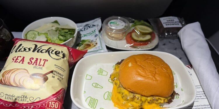 Nos Estados Unidos, a Delta Air Lines iniciou uma colaboração com a Shake Shack, servindo cheeseburgers em voos domésticos de longa distância para passageiros da primeira classe. A United Airlines está indo no mesmo caminho.